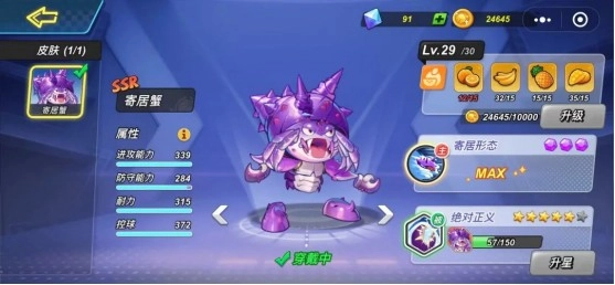 SSR角色寄居蟹行动灵活,技能颇具特色,能缩小身形快速移动,还可随时发动猛烈攻击。
