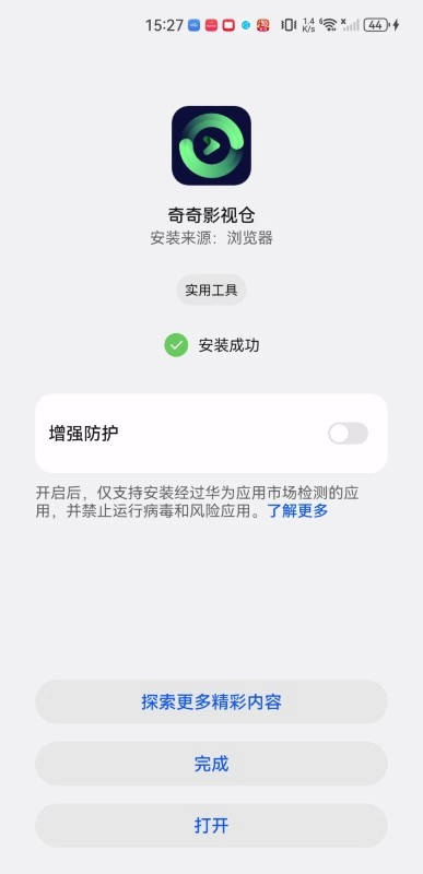 5、最终,出现绿色对号,说明“安装完成”,点击打开,即可体验。(如果出现安装失败的情况,可以到点击)
