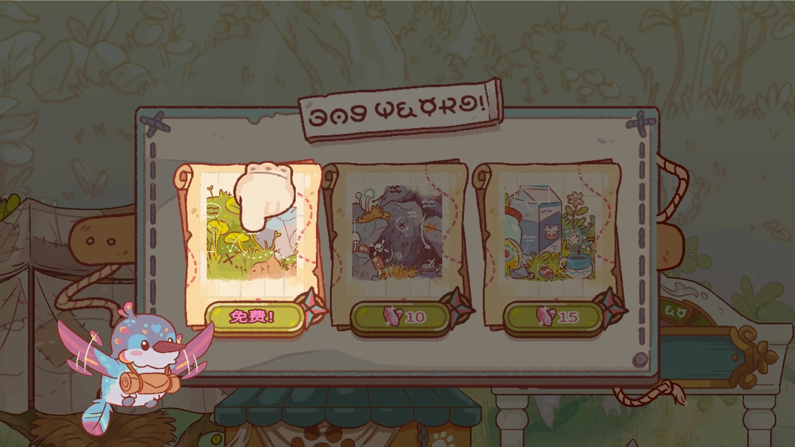 5、接下来就可以着手探索森林了,不过在此之前,得先去找小鸟买一张地图。首张地图是免费获取的,购买地图之后,会解锁更多的家具和物品。