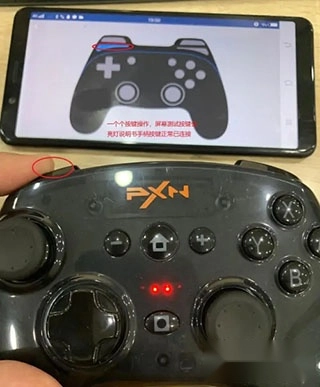 6、按下操作手柄上的任意按键,手机屏幕的测试界面都会显示对应的按键反馈。若所有按键测试均无异常,可点击左上角返回手柄连接界面。