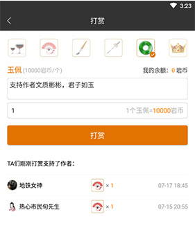 8、确认打赏:挑选您想打赏的金额或者玉佩数量,点击“打赏”按钮来确认该操作。