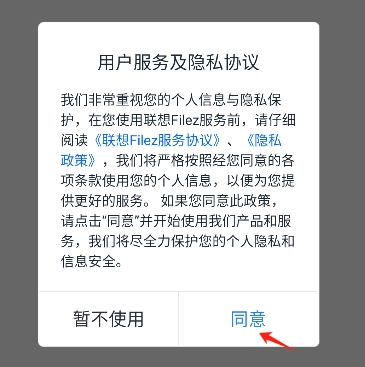 1.安装联想Filez后,点击同意