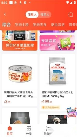 商城,提供100%保真的宠物商品,涵盖食品、玩具、营养保健品等多个品类。