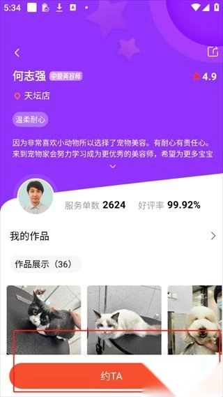 提供包括洗澡、美容、寄养、洁牙、精油SPA等在内的多种宠物服务。用户可以通过一键预约,享受一站式宠物服务体验。