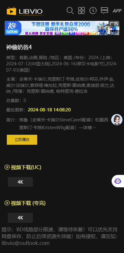 「LIBVIO」的所有资源都存储在其自身服务器上,因此资源画质均达到1080P及以上,且播放速度实现秒开,体验感极佳。