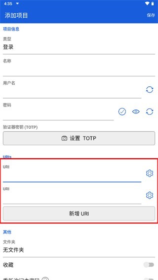 4、选择 新建 URI按钮并输入您登录帐户的 URL