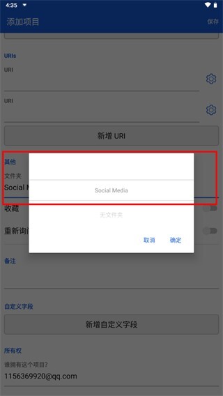 5、在文件夹下拉列表里挑选一个文件夹。要是您按照我们的示例操作,就选择您刚创建好的社交媒体文件夹。