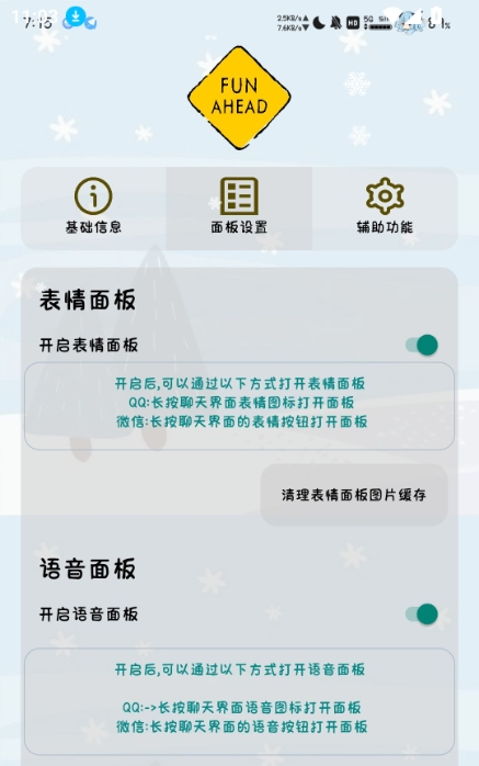 点击“启用”后,长按语音键即可调出语音面板,长按表情键则能打开表情面板。