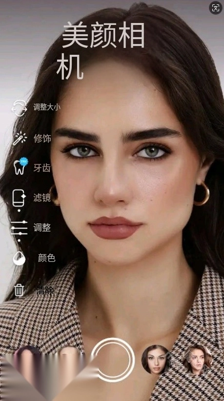 3.在美颜相机界面,可以看到多个美颜选项: