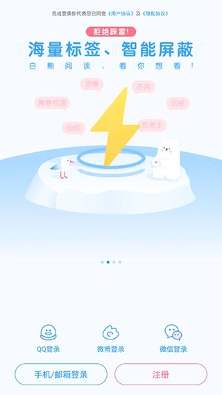 3、白熊阅读是一款面向二次元同人小说与轻小说的阅读创作平台,用户可自由选择进行原创创作或同人创作。
