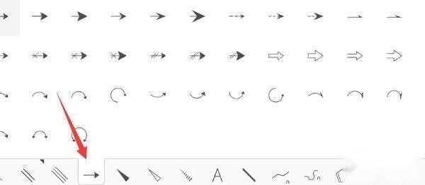 2、长按画板下方工具栏里的【箭头工具】,就能展示出所有箭头样式,您可挑选所需样式并点击应用。