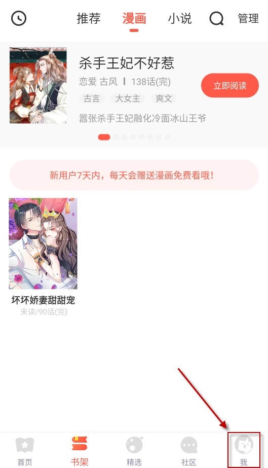 1、安装并打开软件,在首页中有众多精选漫画推荐