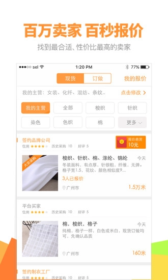 1、好面料平台整合了大量优质面料供应商资源,让用户能拥有更广阔的挑选范围。