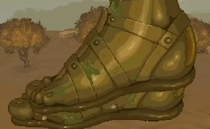 玩家在遭遇第二个BOSS青铜巨人之前,会在某一普通关卡的场景背景中先看到它的整条腿。