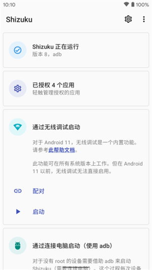 8、之后每当设备重启或者Shizuku失效,我们都能按照相同的步骤重新启动Shizuku。需要说明的是,尽管这听起来可能有些繁琐,但无线调试的配对状态是能够保存的,因此我们每次只需重新开启无线ADB调试就行,配对的步骤可以省去。