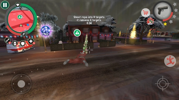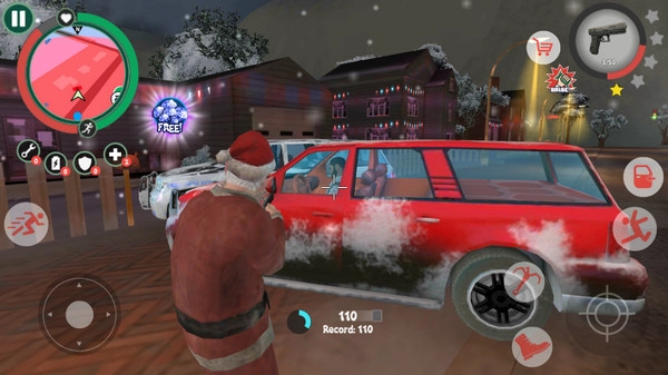 犯罪的桑塔安卓版玩法简单易上手,你能借助摇杆操控圣诞老人的行动,无论是破坏、攻击、偷车还是飞行,都能随心所欲地去做。在犯罪的桑塔手机版里,城市中的所有事物都能被破坏,你可以尽情摧毁各类建筑物,还能接取不同任务,获取丰厚奖励来增强角色的能力。