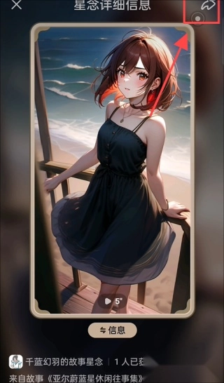 2、挑选你想要更换的星念,进入星念展示页面后,点击右上角的【分享】图标