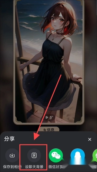 3、点击分享按钮后,屏幕下方会弹出一个窗口,选择【设置聊天】背景就可以了。