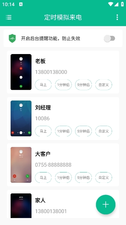 3、后台定时来电:用户能够便捷地设置在指定时间接收模拟来电,无需手动干预,系统自动执行,既方便又快捷。