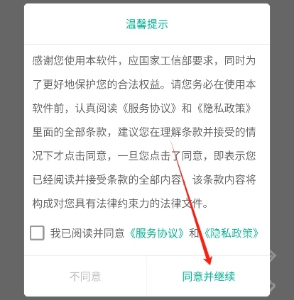 1、首先在魔趣网(m.mfunz.com)下载并安装定时模拟来电软件,然后点击“同意并继续”进入软件。