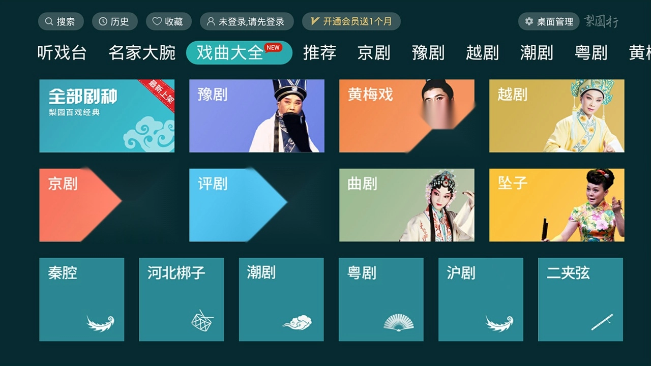 兼容性出色:梨园行戏曲TV版可完美适配电视、机顶盒等各类安卓平台,帮助用户轻松实现电视端的戏曲观看需求。