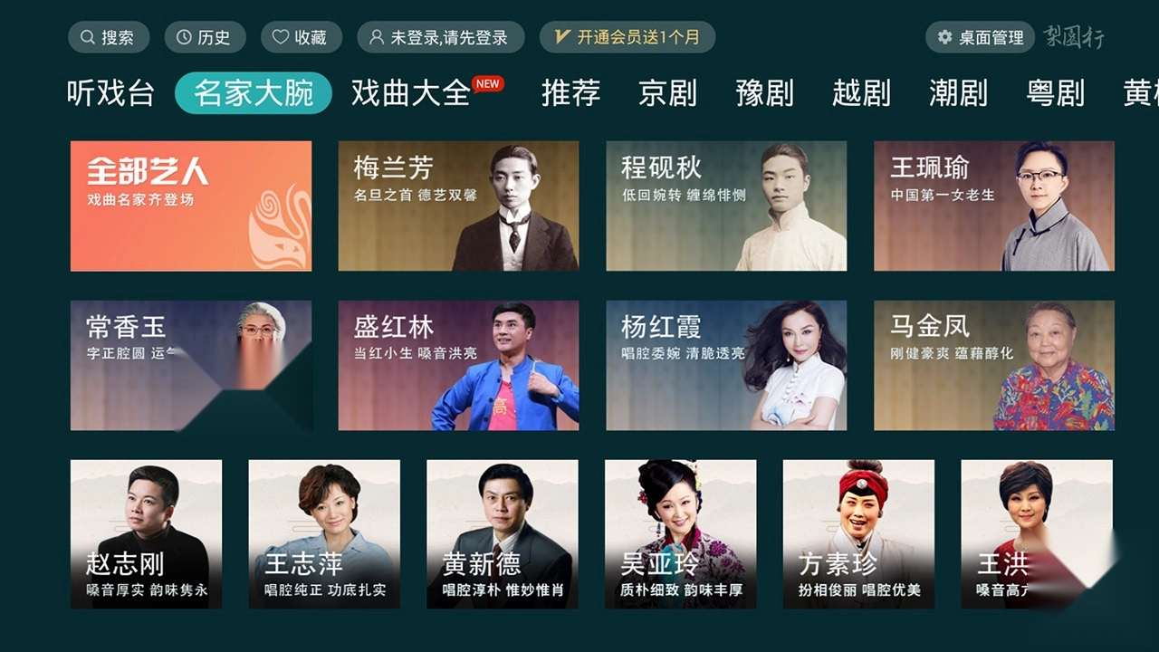 戏曲名家精选集:收录梅兰芳、梅葆玖、李胜素、于魁智、丁凡、曾小敏等中外著名戏曲艺术家的经典作品,为用户呈现顶尖水准的戏曲艺术盛宴。