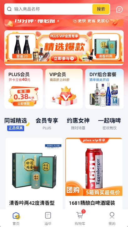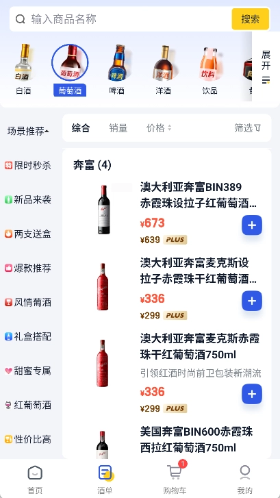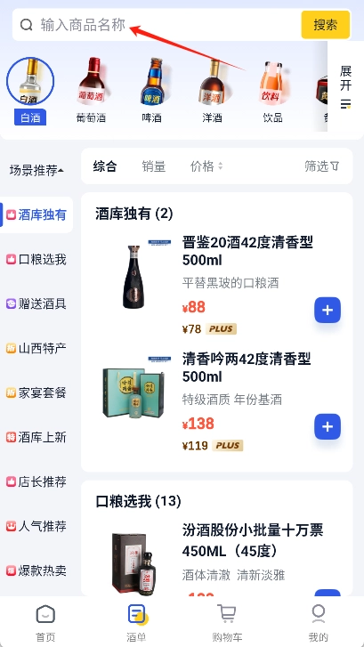 登录后,在酒单页面使用搜索功能来查找自己想购买的商品。