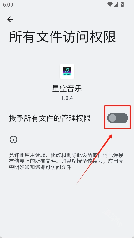 1、在魔趣网找到并安装星空音乐,打开授予权限的按钮后进入软件