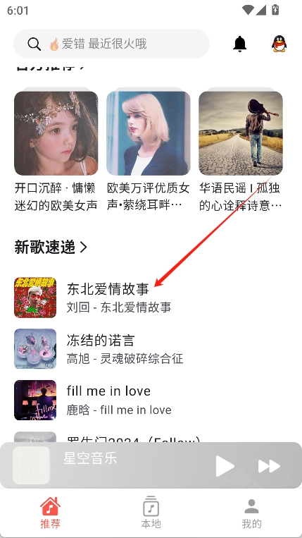 2、进入首页找到你想要的歌曲并点击