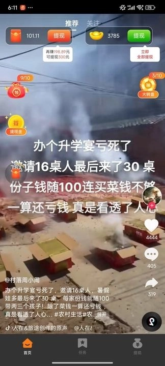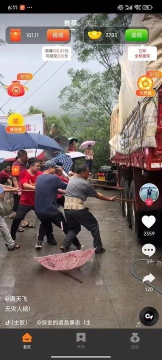 2.发布视频,做任务来获取奖励,兑换红包提取快。