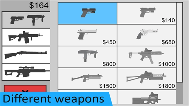4、购入强力武器,助力我们攻克更多关卡,多样威力,可造成致命伤害。