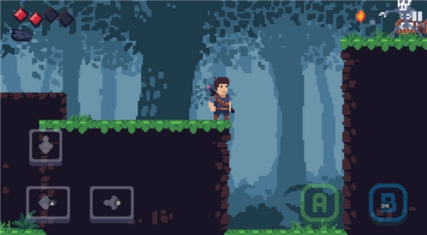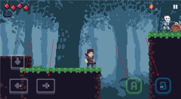 3、左侧的两个按键用于左右移动,右侧的A键负责攻击,B键则是跳跃功能。