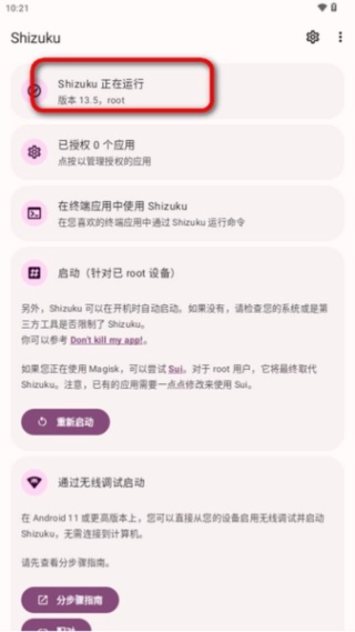 3、这里显示shizuku服务未运行。