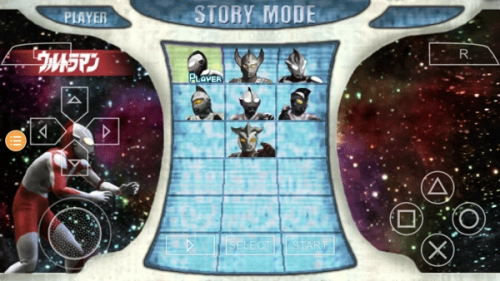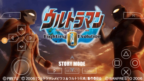 1、下载好奥特曼格斗进化0手机版并点击进入,能看到首页界面,通过左侧的上下箭头按钮选择游戏模式,选好后点击右侧的圆圈按钮确认即可。