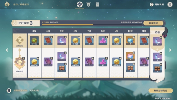 1、纪行:提升纪行等级,每提升10级能得到一个蓝球,也就是160原石。