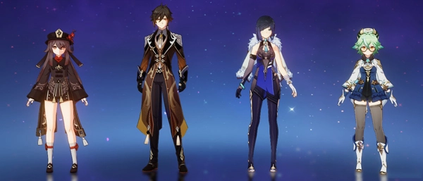 四:胡桃、钟离、夜兰、砂糖