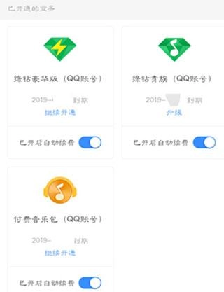 5、目前所有自动续费服务的开关按钮均处于开启状态,只需逐个点击这些按钮将其关闭即可。