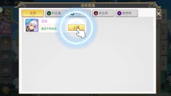 4、获得新英雄后需返回主界面将其编入战斗阵容。