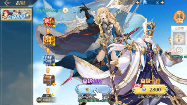 1、点击主界面左下方的招募图标,就能进入英雄召唤界面。