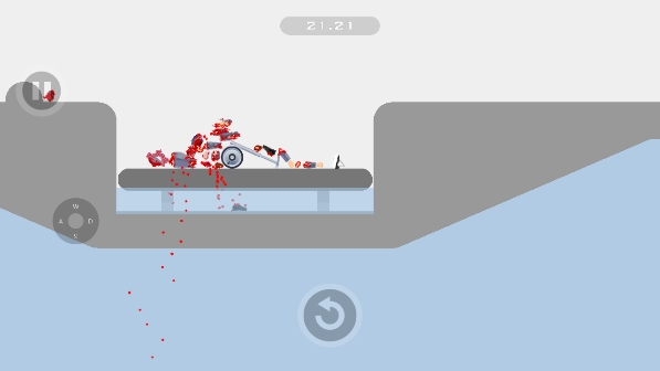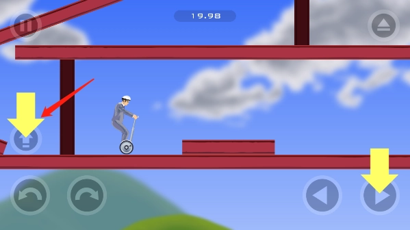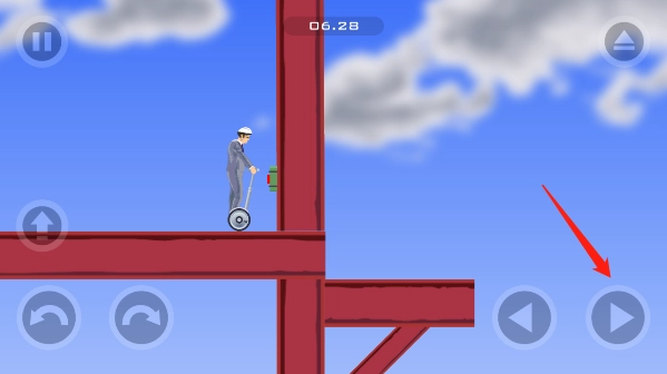 3、进入游戏后,右侧按键控制前进。若前方墙壁上有桥的开关,需向前行驶撞击该开关,之后立即向后退几步再继续后退行驶。注意撞击开关后务必及时后退,否则会被开关喷出的气体推落至后方悬崖。