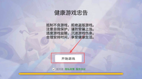 1、游戏启动步骤:阅读健康游戏忠告后,点击“开始游戏”按钮即可进入游戏。
