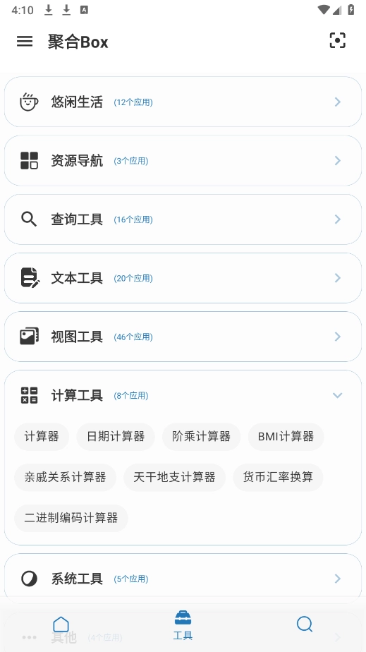 2、进入首页后,点击“工具”页面,即可看到平台提供的计算工具、文本工具和系统工具等各类工具。