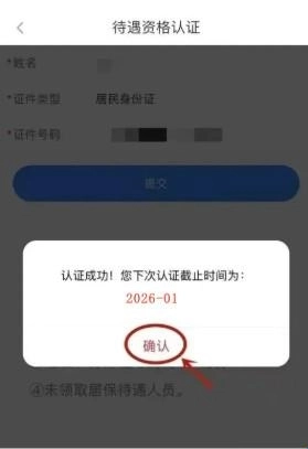 7、提示下次认证的截止时间,点击确认按钮,即可完成本次资格认证。