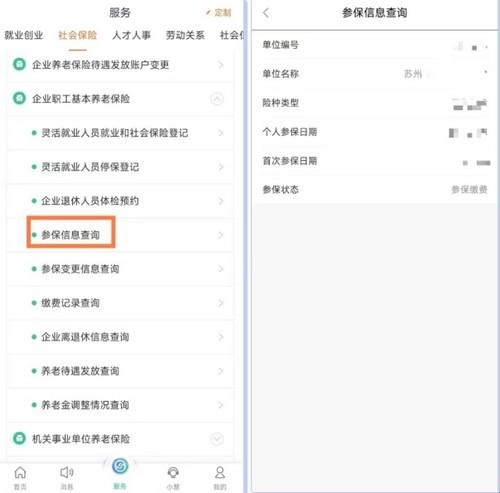 3、点击“参保信息查询”选项,就能查看本人的参保单位名称、所参保险种类型以及参保状态等相关信息。