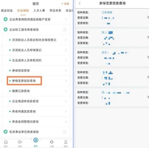 4、点击“参保变更信息查询”选项,就能查询到本人对应险种的变更日期与变更类型。