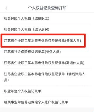 4、选择“江苏省企业职工基本养老保险权益记录单(参保人员)”。