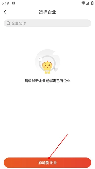 1、在企业选择页面,点击添加新企业的按钮,即可进入企业认证页面。