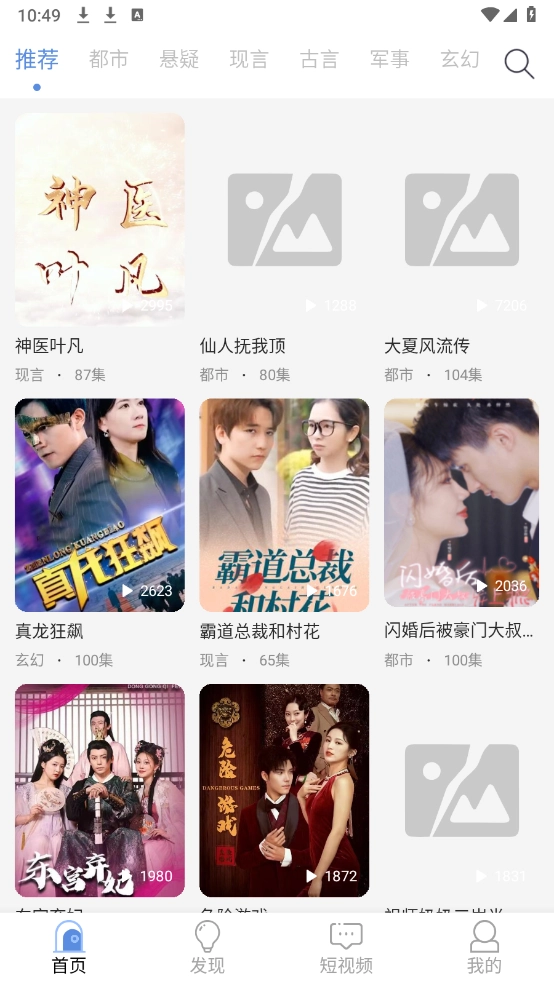 2、进入首页后,这里汇聚了丰富多样的短剧资源,涵盖都市、言情、古言等多种类型。