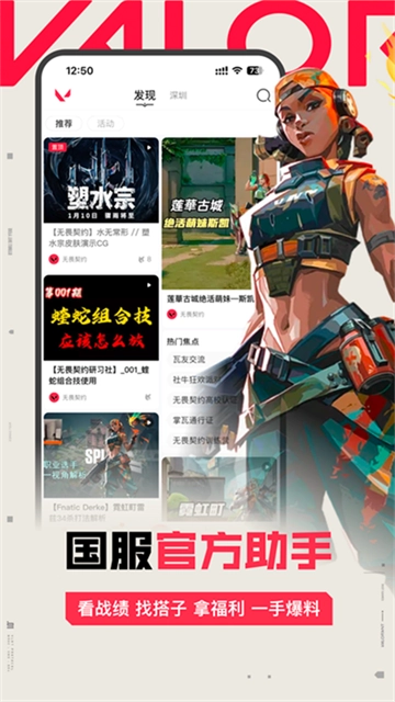 掌上无畏契约是深圳市腾讯计算机系统有限公司为《无畏契约》玩家打造的线上游戏辅助平台,这里汇聚了全面的游戏资讯与精彩赛事内容——你能便捷掌握最新版本更新、热门活动动态,还能实时追踪赛事进程,让游戏信息获取更高效丰富。而平台的核心亮点当属每日商店功能,用户可在此随机抽取游戏内各类皮肤,带着紧张又期待的心情,解锁心仪的皮肤奖励!