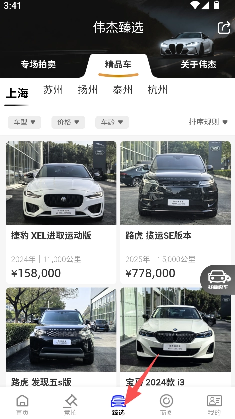 1、打开车联拍臻选页面,选择对应地区的目标车辆。